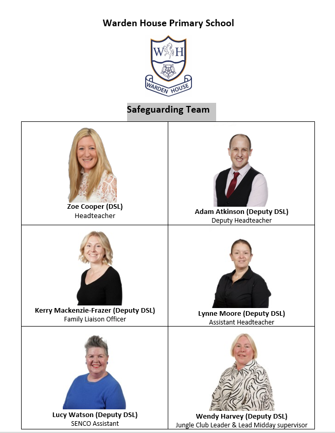 Our Designated Safeguarding Leads (DSLs) have overall responsibility for child protection practice in school. Our DSLs are: Zoe Cooper (Headteacher), supported by Adam Atkinson (Deputy Headteacher), Lynne Moore (Assistant Headteacher), Kerry Mackenzie-Frazer (Family Liaison Officer), Lucy Watson (SENCO Assistant) and Wendy Harvey (Jungle Club Lead and Lead Midday Supervisor)