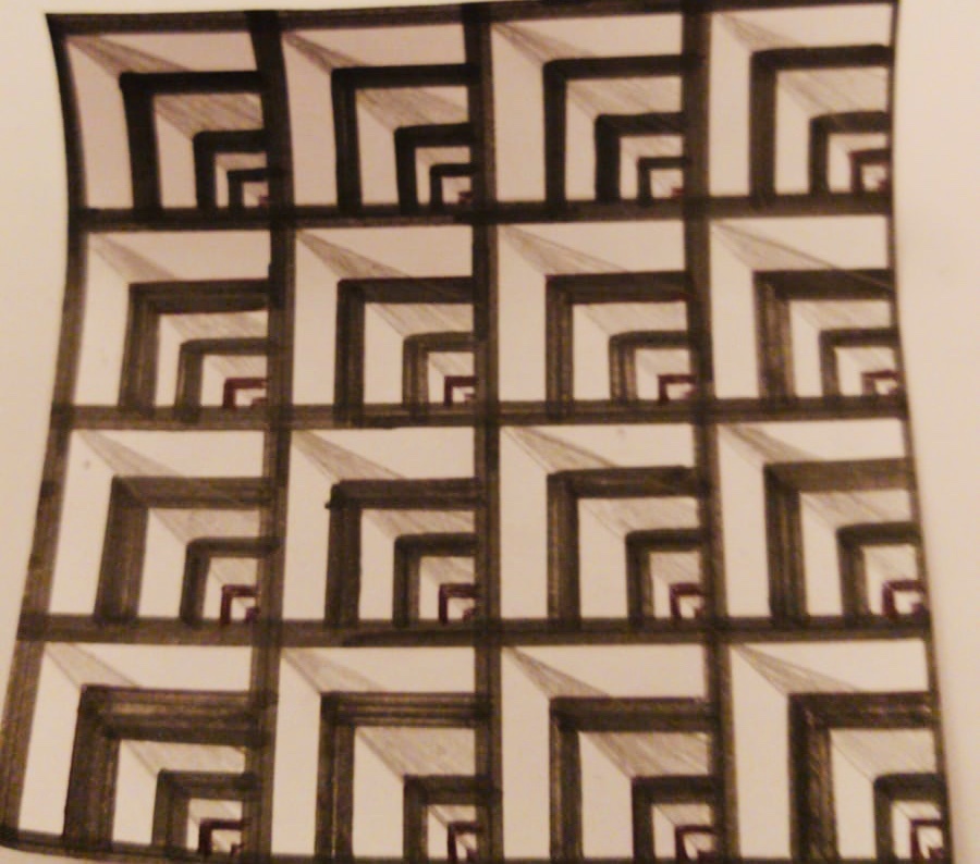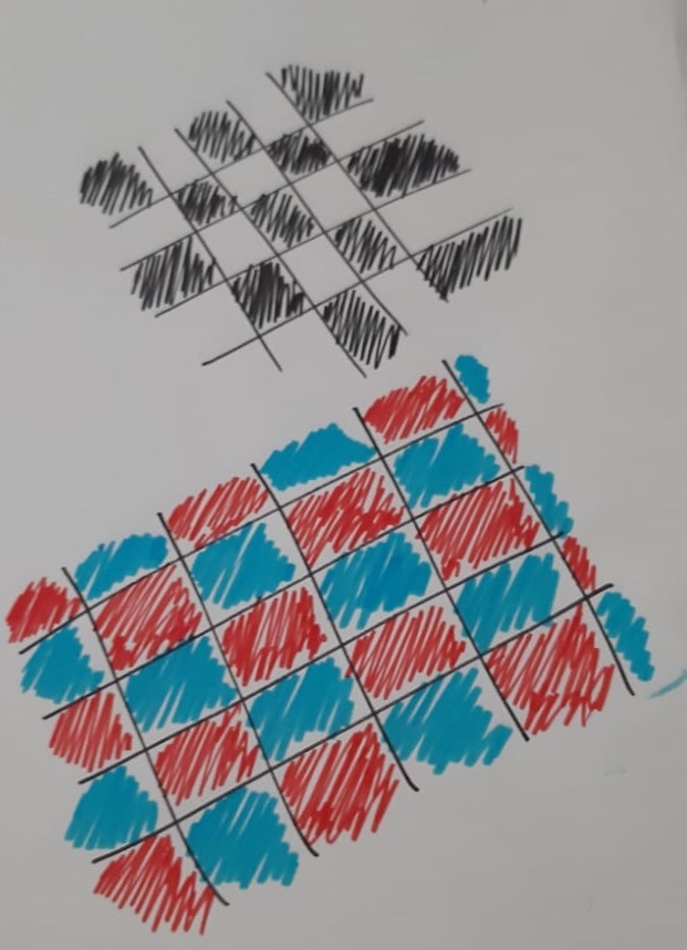 Created by drawing a grid and colouring in every other square...