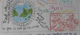 Year 5 have been listening to the song 'Imagine' by John Lennon. They were asked to produce a picture of what they felt a perfect world would be like. Well do to Abigail on a fantastic piece of work.
